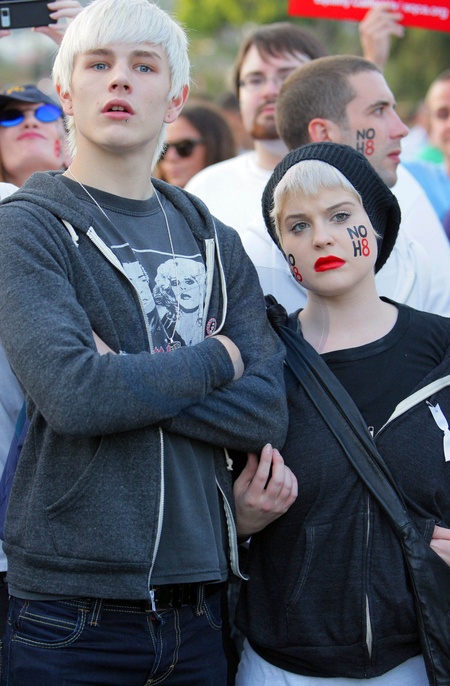Kelly Osbourne i Luke Worrell protestuja przeciwko Propozycji 8, zabraniajacej malzenstw homoseksualnych, USA