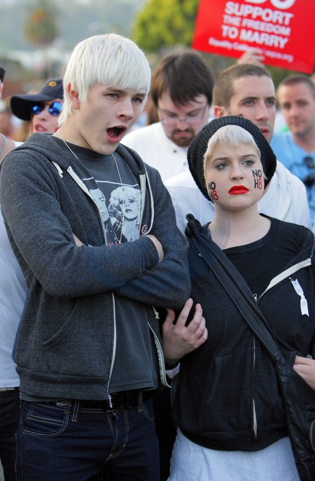 Kelly Osbourne i Luke Worrell protestuja przeciwko Propozycji 8, zabraniajacej malzenstw homoseksualnych, USA
