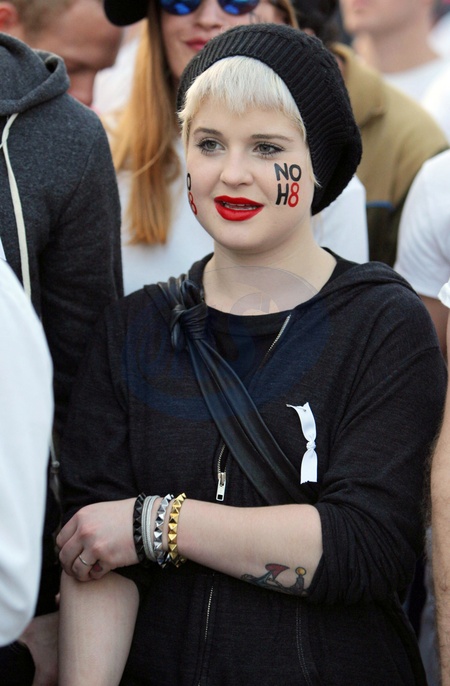 Kelly Osbourne i Luke Worrell protestuja przeciwko Propozycji 8, zabraniajacej malzenstw homoseksualnych, USA