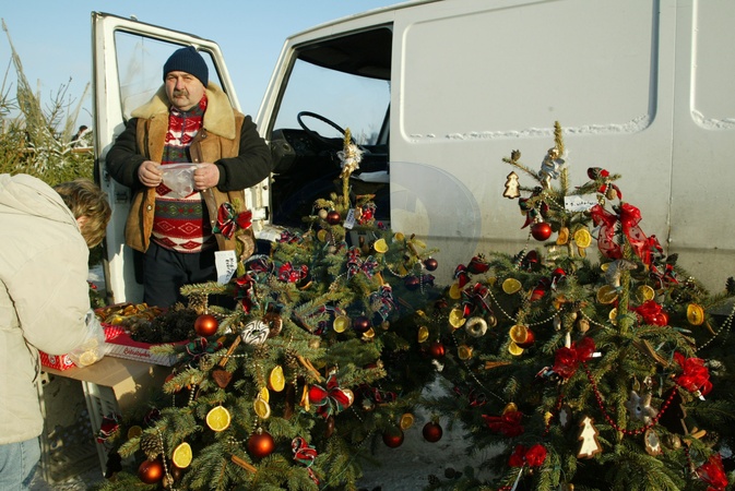 Sprzedaz choinek przed Bozym Narodzeniem