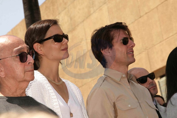Katie Holmes i Tom Cruise podczas uroczystosci, na ktorej Diaz odslonila swoja gwiazde w Alei Gwiazd, Los Angeles