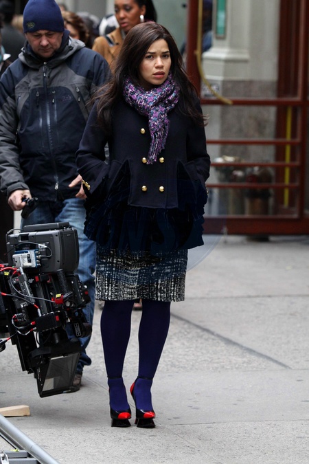 America Ferrera na planie filmowym "Brzydula Betty", Nowy Jork