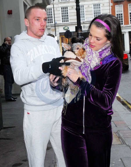 Danielle Lloyd i jej narzeczony Jamie O'Hara na spacerze z psem, Londyn