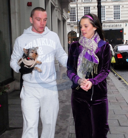 Danielle Lloyd i jej narzeczony Jamie O'Hara na spacerze z psem, Londyn