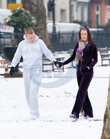 Danielle Lloyd i jej narzeczony Jamie O'Hara na spacerze z psem, Londyn