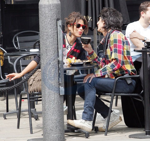 Ronnie Wood ze swoja dziewczyna w ogrodku kawiarnianym, Londyn