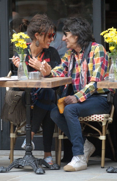 Ronnie Wood ze swoja dziewczyna w ogrodku kawiarnianym, Londyn