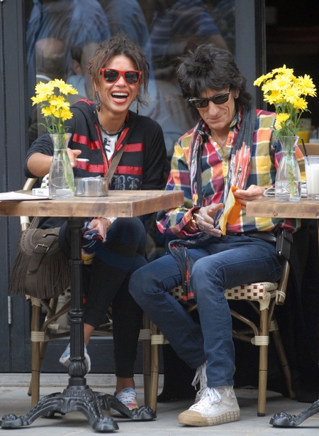 Ronnie Wood ze swoja dziewczyna w ogrodku kawiarnianym, Londyn
