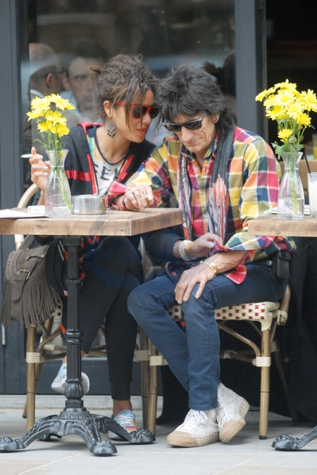 Ronnie Wood ze swoja dziewczyna w ogrodku kawiarnianym, Londyn