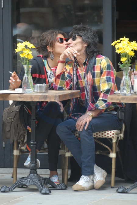 Ronnie Wood ze swoja dziewczyna w ogrodku kawiarnianym, Londyn