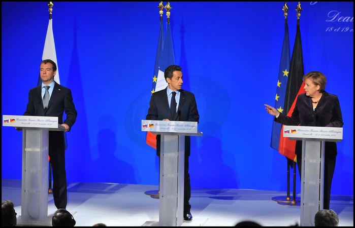 Dmitrij Miedwiediew, Nicolas Sarkozy, Angela Merkel