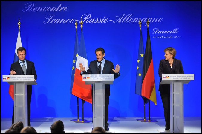 Dmitrij Miedwiediew, Nicolas Sarkozy, Angela Merkel