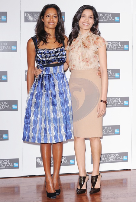Freida Pinto i Rula Jebreal na konferencji filmu Miral, podczas BFI London Film Festival