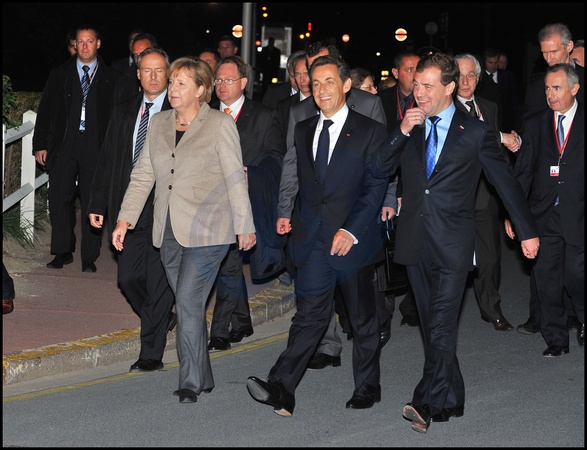 Dmitrij Miedwiediew, Nicolas Sarkozy, Angela Merkel