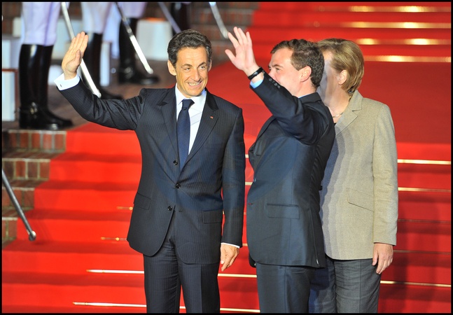 Dmitrij Miedwiediew, Nicolas Sarkozy, Angela Merkel