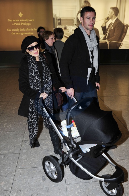 Dannii Minogue i Kris Smith z dzieckiem na lotnisku, Londyn
