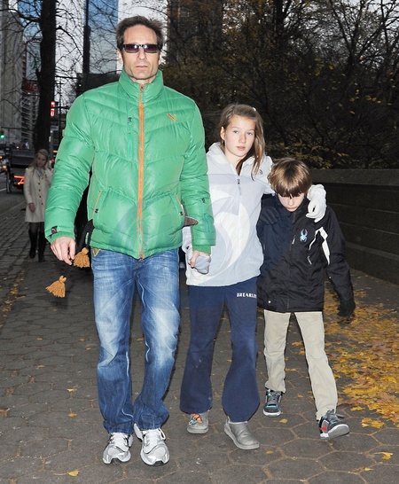 David Duchovny z dziecmi na spacerze, Nowy Jork