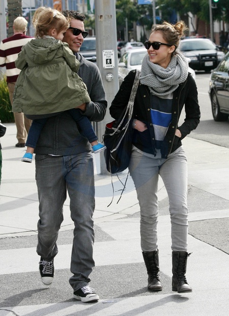 Jessica Alba z mezem i corka na spacerze, Beverly Hills