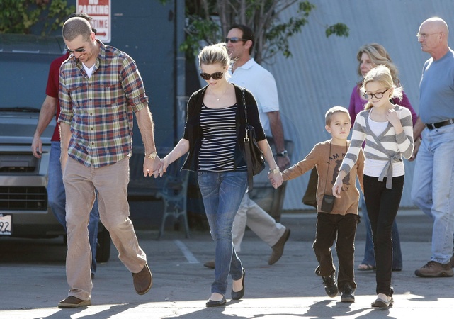 Reese Witherspoon z dziecmi i chlopakiem ida do kosciola, Los Angeles