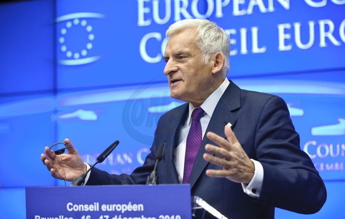 Jerzy Buzek podczas szczytu europejskiego w Brukseli