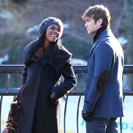 Chace Crawford i Tika Sumpter na planie 'Gossip Girl'