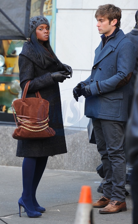 Chace Crawford i Tika Sumpter na planie 'Gossip Girl'