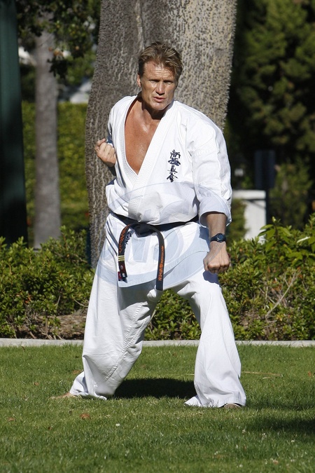 Dolph Lundgren trenuje sztuki walki w parku w Beverly Hills