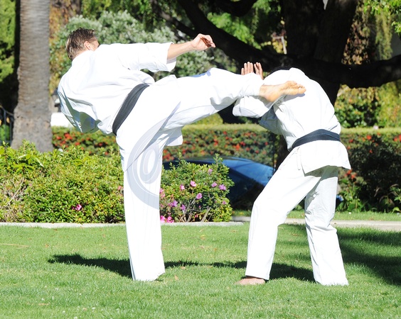 Dolph Lundgren trenuje sztuki walki w parku w Beverly Hills