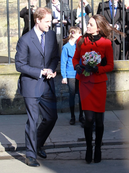 Ksiaze William ze swoja narzeczona z wizyta na uniwersytecie w Szkocji.