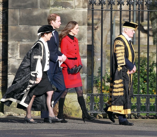 Ksiaze William ze swoja narzeczona z wizyta na uniwersytecie w Szkocji.