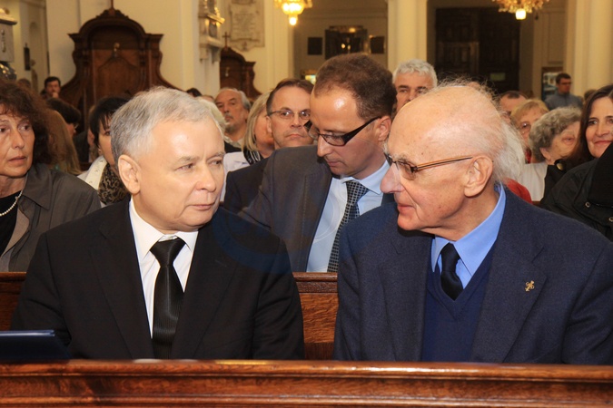 Wojciech Kilar laureatem honorowej nagrody im. Lecha Kaczy?skiego. Wyr??nienie wr?czono w warszawskim ko?ciele ?w. Krzy?a. W uroczysto?ci uczestniczy? m.in. prezes PiS Jaros?aw Kaczy?ski.