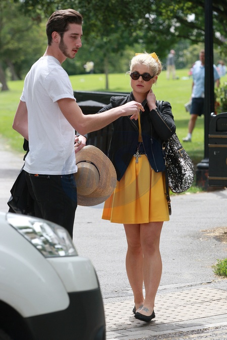 Kelly Osbourne w zoltej sukience z kuplami w Londynie.