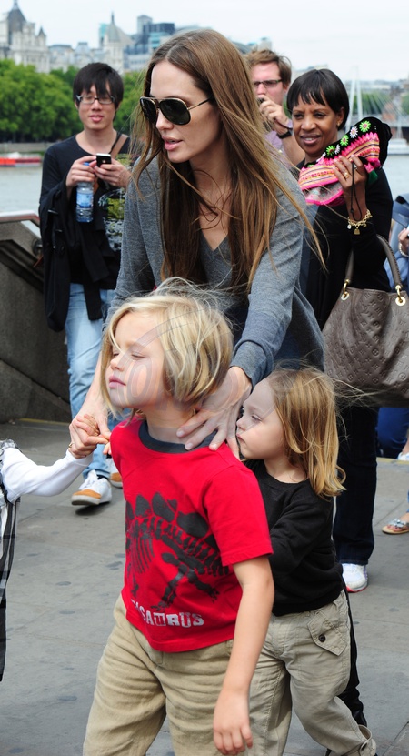 Angelina Jolie z corka Shiloh i z synkiem Knoxem