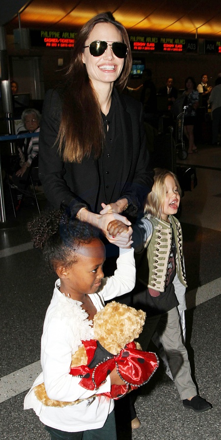 Angelina Jolie z corkami na lotnisku Lax, Los Angeles