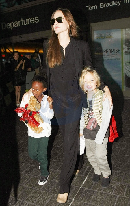 Angelina Jolie z corkami na lotnisku Lax, Los Angeles