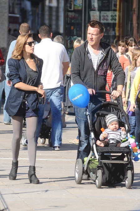 Kamila Baar z partnerem Wojciechem Blachem i synem na spacerze po Nowym Swiecie, Warszawa 2011