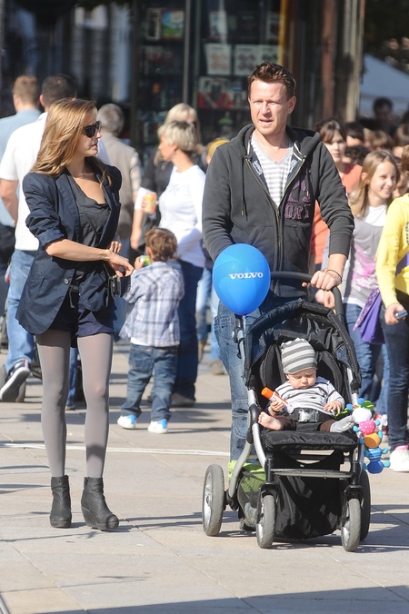 Kamila Baar z partnerem Wojciechem Blachem i synem na spacerze po Nowym Swiecie, Warszawa 2011
