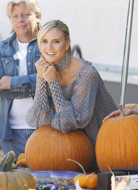 Heidi Klum rzezbi w dyni na planie programu telewizyjnego, Beverly Hills