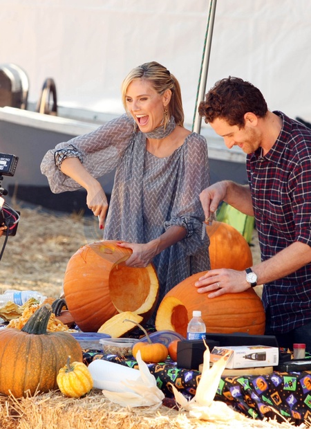 Heidi Klum rzezbi w dyni na planie programu telewizyjnego, Beverly Hills