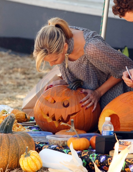 Heidi Klum rzezbi w dyni na planie programu telewizyjnego, Beverly Hills