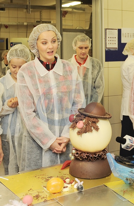 Malgorzata Socha w fabryce czekolady w Wedlowskiej Pracowni Rarytasow z fundacja Dr Clowna, Warszawa 2011