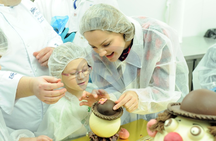 Malgorzata Socha w fabryce czekolady w Wedlowskiej Pracowni Rarytasow z fundacja Dr Clowna, Warszawa 2011