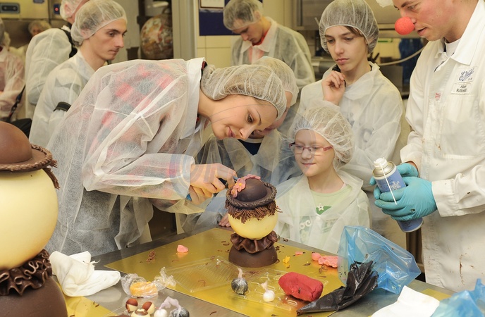 Malgorzata Socha w fabryce czekolady w Wedlowskiej Pracowni Rarytasow z fundacja Dr Clowna, Warszawa 2011