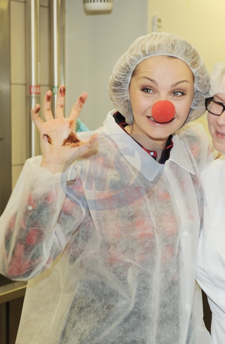 Malgorzata Socha w fabryce czekolady w Wedlowskiej Pracowni Rarytasow z fundacja Dr Clowna, Warszawa 2011