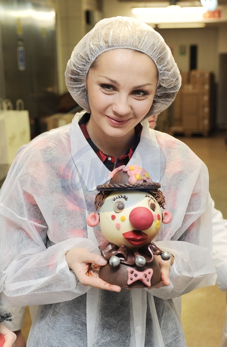 Malgorzata Socha w fabryce czekolady w Wedlowskiej Pracowni Rarytasow z fundacja Dr Clowna, Warszawa 2011