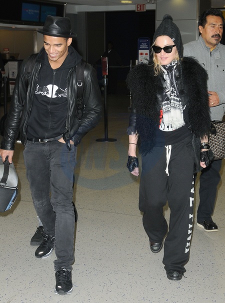 Madonna z corkami i jej chlopak Brahim Zaibat na lotnisku, Nowy Jork