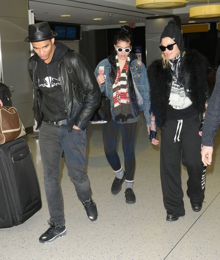 Madonna z corkami i jej chlopak Brahim Zaibat na lotnisku, Nowy Jork