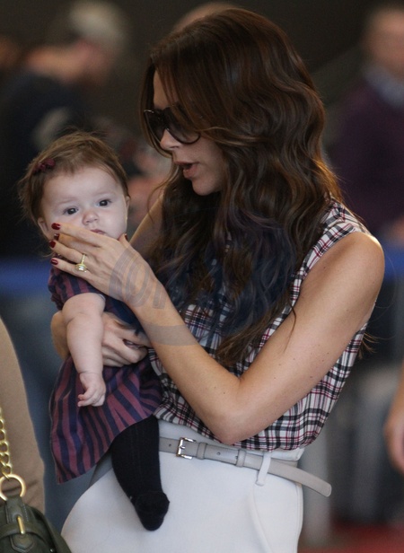 Victoria Beckham z corka Harper na lotnisku w Los Angeles