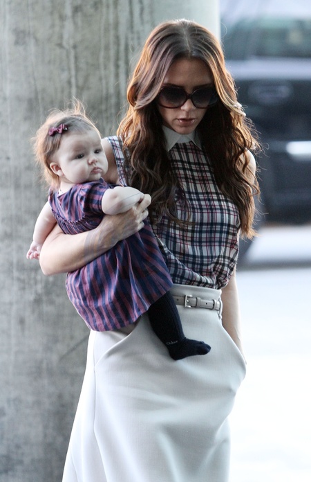 Victoria Beckham z corka Harper na lotnisku w Los Angeles