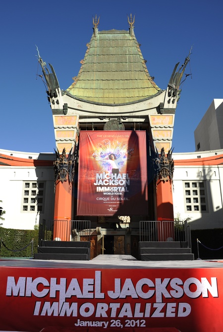 Dzieci Michaela Jacksona i jego przyjaciele podczas imprezy upamietniajacej muzyka w Grauman's Chinese Theatre, Hollywood